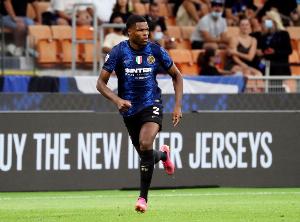 该记者透露:“国际米兰方面,邓弗里斯接近缺席对阵AC米兰的比赛。这位荷兰边卫的恢复情况并不理想,卡洛斯·奥古斯托已在右路准备就绪。”